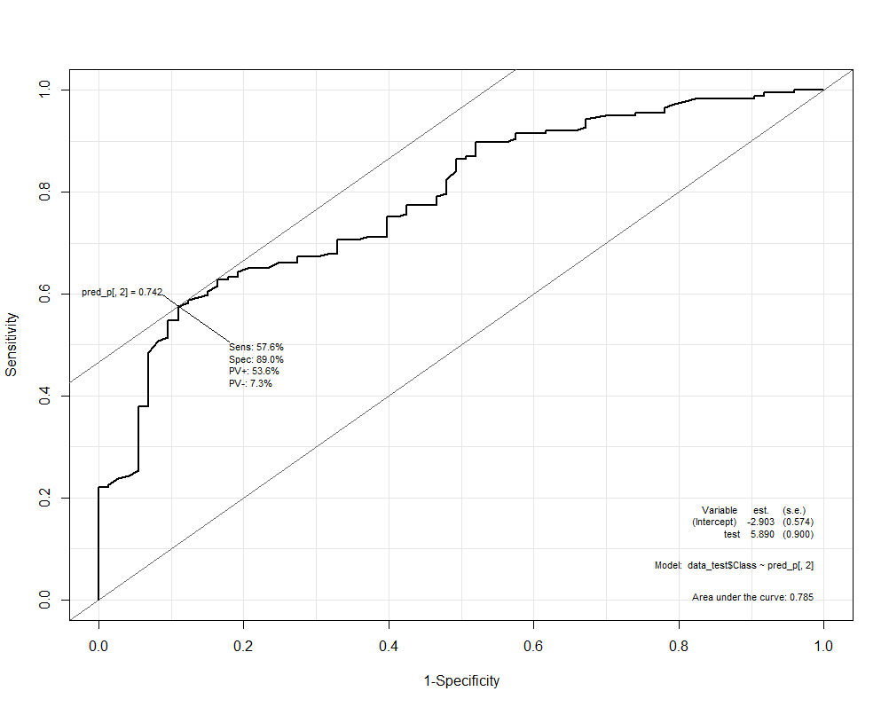 roc 커브도 그려줍니다. roc 커브를 그리기 위해 predict 의 type 을 prob로 바꿔야합니다.